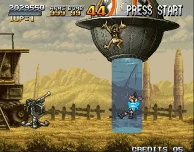 然而在《合金弹头2》中摩登明显被火星人摆了一道,就在大战前夕,外星人再次背叛了摩登将军来了一波黑吃黑,它们的目的或许并不仅仅是控制地球的一小块区域,于是火星人抓住了摩登将军,并企图控制他的部队。