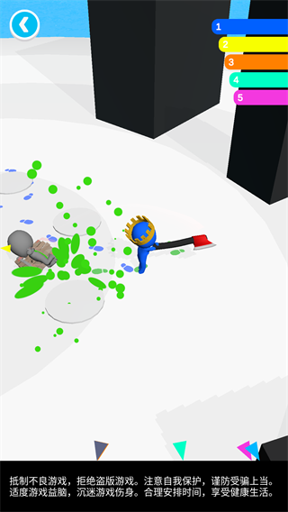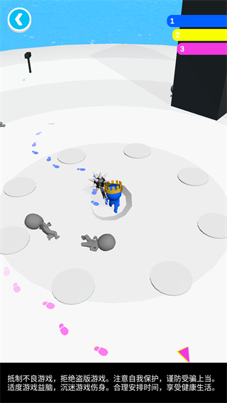 暴走飞刀是一款趣味性十足的冒险闯关游戏,玩家在游戏中需要操作橡皮人展开冒险,既要灵巧的躲避对手的攻击,还要找准时机击败敌人并获得最终的胜利,这样才能顺利过关,游戏的画面非常的简单,但是想要在游戏中获得最终的胜利还是具有一定难度的,会有许多艰难的对局时刻需要你来完成,游戏中用不同颜色的皮肤区分自己和敌人,每一局开始后有多个小人在这里进行大混战,你需要选择你最喜欢的武器,进行进攻或者防御,留到最后才是赢家。