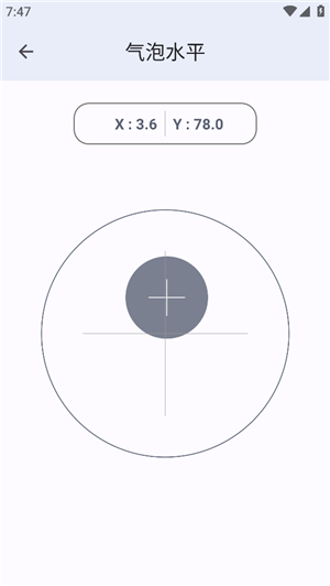 4、气泡定位,把手机放在你要测试的平面上,利用手机的陀螺仪来判断是否水平。