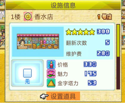 提升金字塔的魅力,可以吸引更多客人。提升金字塔力则会吸引更多的员工后补,客人购买量也会增加。