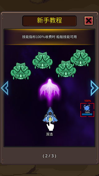 针对游戏的玩法,相信玩过雷电这类飞行射击游戏的朋友来说都不会陌生,左侧技能,点击屏幕即可进行移动战斗。