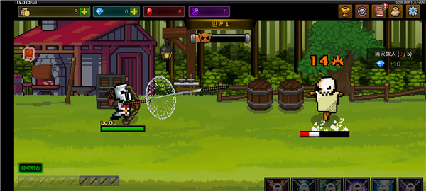 6、角色会自动发射弓箭攻击敌人,玩家们的任主要务是不断的移动。