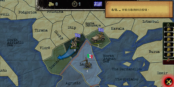 9、您现在已经命令部队从Edessa转移到Ioannina。如果要取消您的命令,请选择位于Edessa的部队。