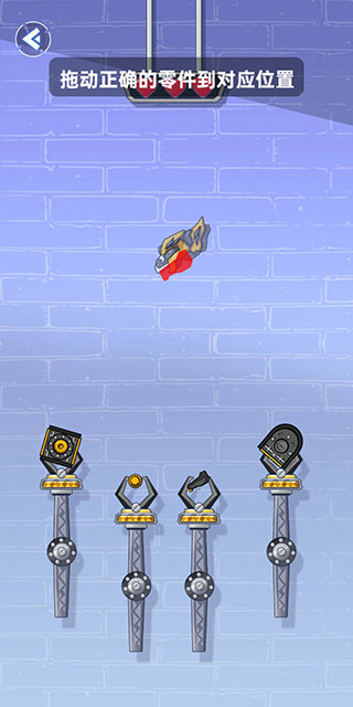 4、第三步,从下方的数个零件中拖动正确的零件到对应位置。