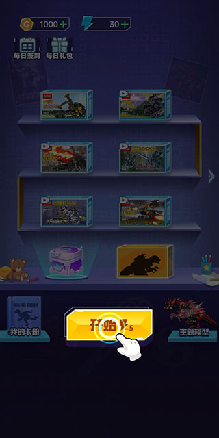 1、进入组装机甲龙正版游戏之后,点击下方的开始按钮,消耗5点体力进行拼装。