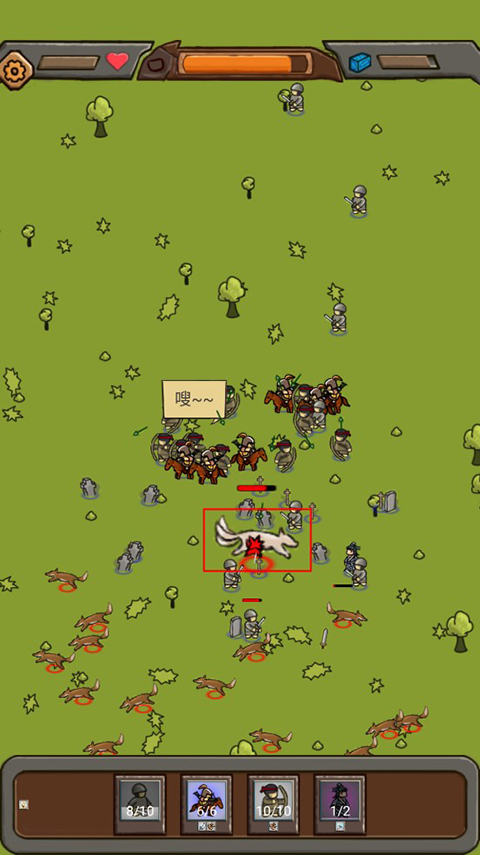 2、游戏中你将成为一个英雄,带领你的军队,召唤增援。