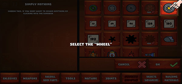 3、接头:接头或连接器可用于建造复杂的车辆、建筑物或机械。例如,您可以在轮子或轮船、坦克上建造研磨机……游戏提供不同的关节,如绳索、活塞、螺栓、马达……