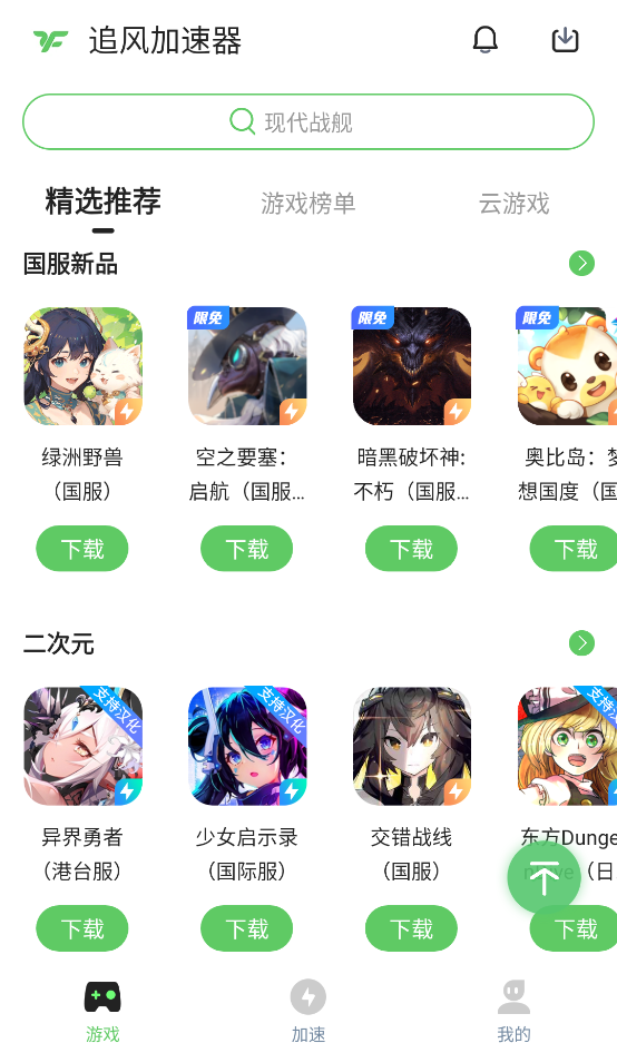 1、应用提供绝大部分游戏的加速,包括很多国外的游戏,最新出的游戏也一样有。