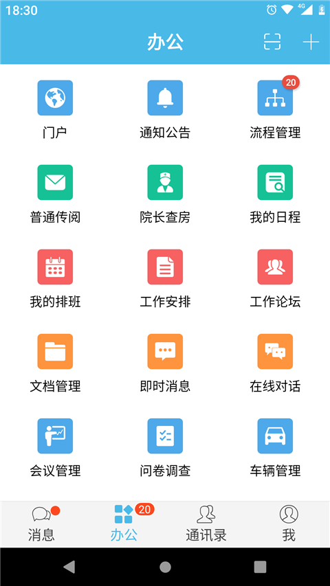 3、进入软件首页,为用户提供了了很多高效便捷的办公功能,比如通知、管理、传阅、查房等。
