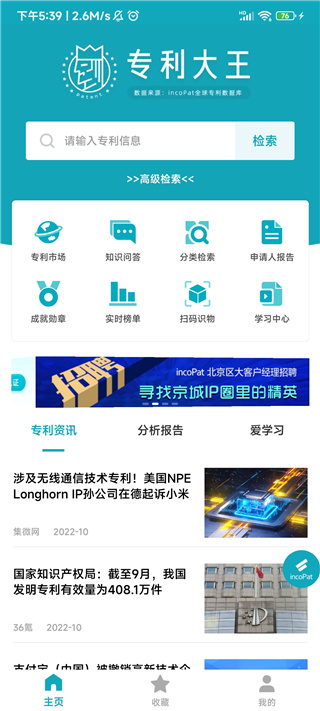 1、合享智慧,全新改版专利大王。更新的界面,更快的访问速度。