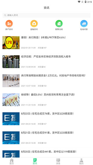 2、如果用户想了解更多关于住房方面的信息,可以来到【资讯】页面进行查看。