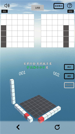 4、这里是因为从下至上四层相同,所以如图,一次性选中从下至上四层方块,点击添加,现在可以看到提交答案选项亮起,代表答案正确,点击它;
