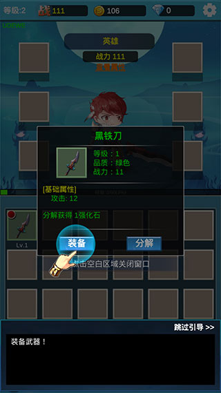 2、标记为红点的装备表示更强的装备,无需比较,直接装备即可。