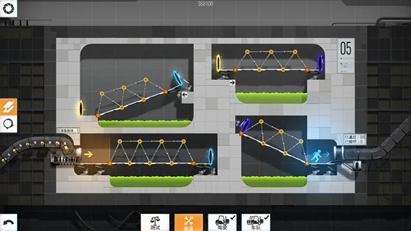 1、桥梁建筑师传送门中文版分为6章,每章10个关卡,烧脑程度逐步增加。