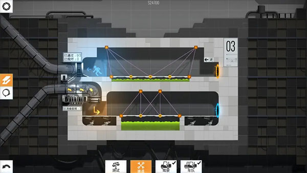 3、在桥梁建筑师传送门中文版中利用传送门、光圈弹射板、动力凝胶、排斥凝胶等完成复杂的任务。
