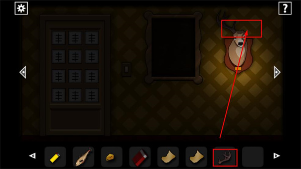 9、首先来到鹿头这个位置,将鹿角放到鹿头上面,鹿嘴嘴巴当中可以获得道具。