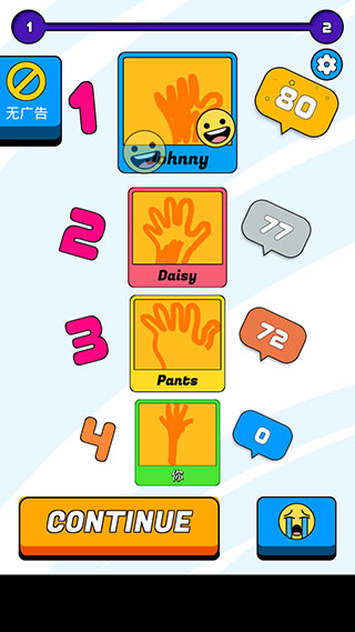 7、并且按照系统评分会进行排名,点击CONTINUE可以继续挑战。