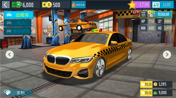 3、这里以事业模式玩法进入,在这里我们可以切换其他出租车(需要相应的钞票);