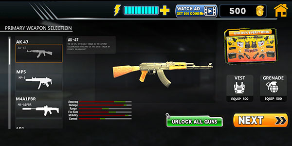 5、完成大量的任务并解锁更多的武器,这些武器都需要使用大量资金购买。