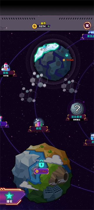6、游戏中还有着多种星球等你解锁,拥有不同的资源等你采集;