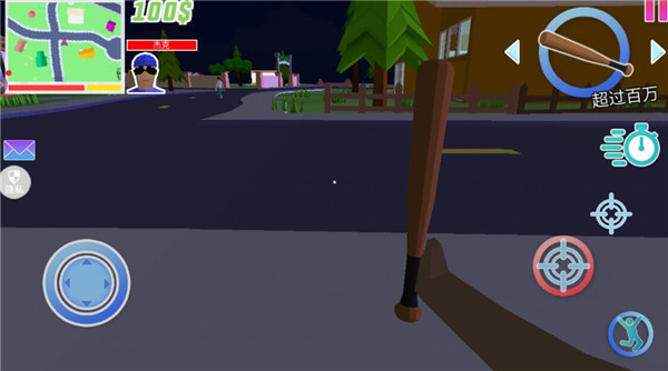 4、玩家可以控制角色在房间外面的世界中自由的探索,可以用各种工具袭击路人,比如木棒枪支弹药等