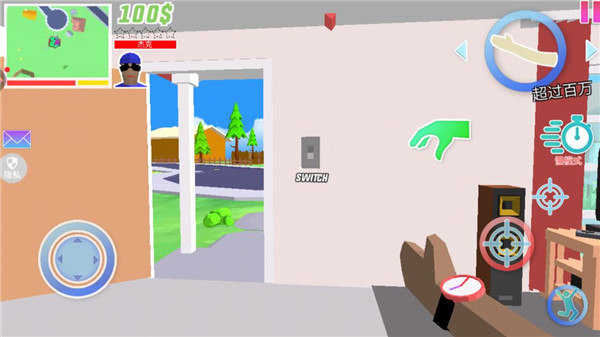 根据攻略,进入游戏后可以先选单人模式,在房间内随便逛逛,甚至还能睡觉。外面的世界更有意思,你可以用木棒、枪支之类的工具打人,但杀太多人会被警察抓,所以要跑得快点。地图上有各种店铺的位置,比如武器店,方便你去买东西。