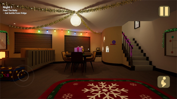 游戏中,玩家不仅要照顾黄衣婴儿的饮食起居,还要应对她逐渐变异后的攻击行为。游戏画面采用了高水准的3D画风,配合逼真的背景音效和诡异的灯光设计,营造出强烈的恐惧氛围。此外,游戏还加入了圣诞元素,比如装饰树、雪人等,让场景更加丰富有趣。