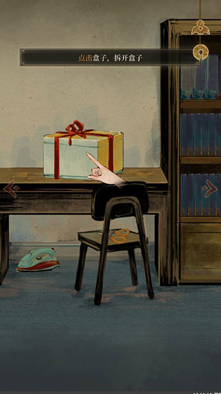 3、在你思考的时候,突然敲门声响起,门口没有人,只有一个包裹,先点击盒子,打开看看里面有什么吧。