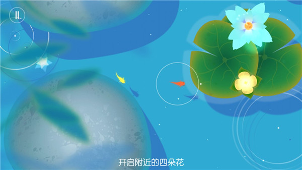 1、控制你的小鱼,去寻找其他的鲤鱼,并开启对应颜色的花朵;