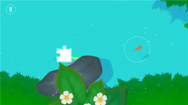 但是这时一定要用力的沿着河道下方游,因为一块石头前有一块拼图,如果错过是不能游回去捡的,除非你重新玩。(玩了好几次才截的图不容易啊(•̩̩̩̩_•̩̩̩̩))捡到拼图后,我们能做到的,就是欣赏这美景了。