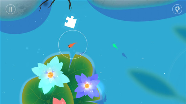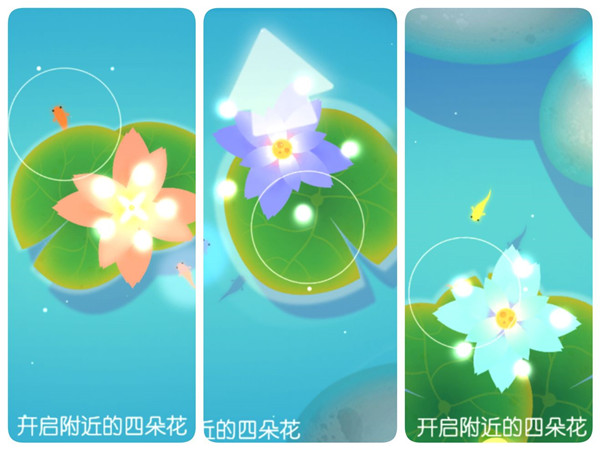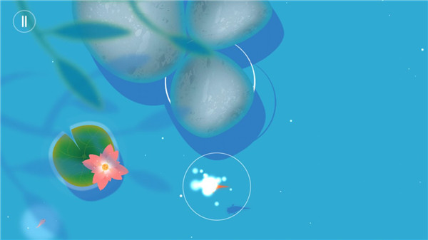 1、唯美画面:绚丽色彩的扁平化风格搭配着奇异自然的东方元素,渲染出一片清爽宁静的荷塘,玩家可以像小鱼一样畅游其中,躁动的心也渐渐安宁。