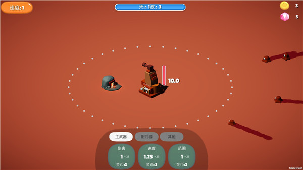 2、当上方的安全时间过去后就会有敌人出现进攻,玩家还可以点击左上角的游戏速度来加快游戏过程。