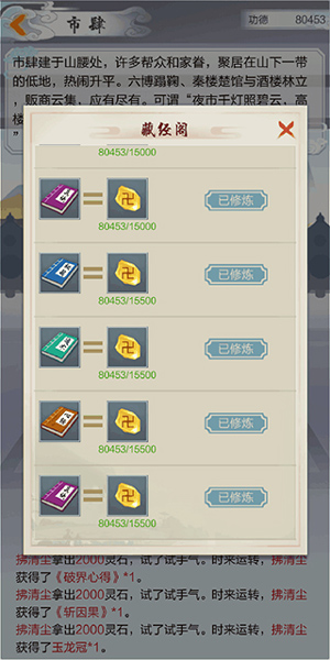 ①坊市的书飞升前主要买真诀的,尤其是10万的书。飞升后除了真诀书,其他可以等正(邪)气够了帮助(打劫),这样可以省好多钱。1层需要500正(邪)气,2层需要1500,3层需要3000。10万的书和高阶的虚空石都可以打劫/帮助获得。
