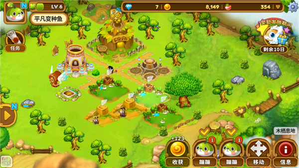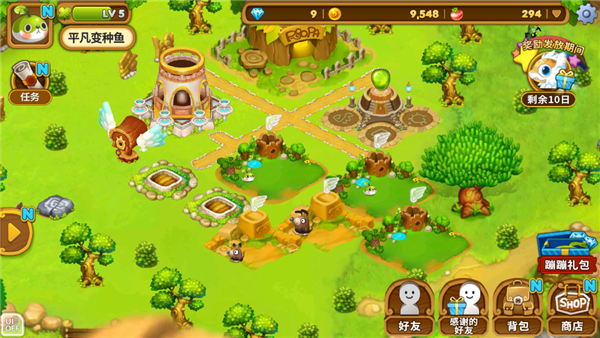 有了金币可以购买树木、绿草丛、砾石路等装饰品,让你的农场看上去更加繁荣,扩展你的农场面积,放置更多内容。还有好友系统玩法,你可以添加好友,去它们的农场帮助收集,每帮助好友收集资源一次可以获得钻石奖励哦,钻石有利于你加快繁养Wooparoos。