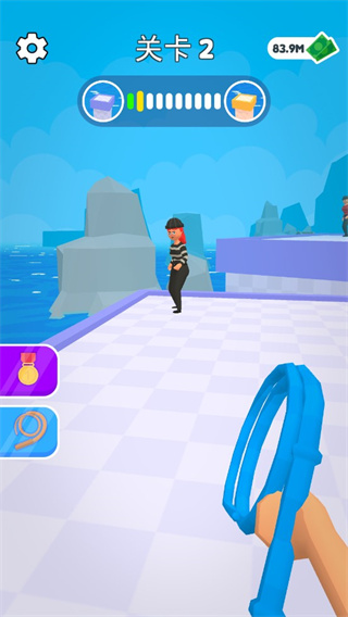 游戏操作简单,这里无需瞄准也不需要走位,直接点击屏幕上敌人的身体部位即可挥鞭攻击,将所有敌人丢出场外就可以获胜。皮鞭大师游戏中玩家可以选择一个自己喜欢的皮鞭开始游戏,可以通过用皮鞭将敌人爆头击败敌人或用皮鞭抓住敌人扔出场外,一路过关闯到终点,就能获得终点的宝箱奖励,没胜利一次我们还可以慢慢解锁其他的皮鞭。