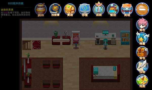 4、右上角的“+”号点开,可以看到很多分类菜单:技能书、商城、成就、背包、角色等多种功能。