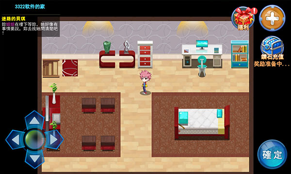 3、左上角是主线任务提示,左下角按钮控制角色自由移动,注意在左侧任意位置滑动即可操控移动,不一定非要按住这个按钮。