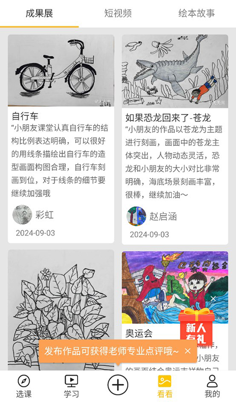 每一幅作品都有老师的专业点评,作品永久保存,拥有专属艺术档案。