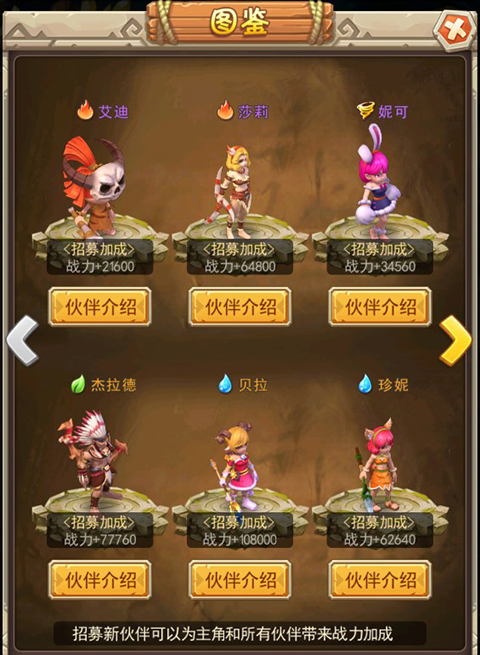 4、伙伴:游戏内有着各种伙伴可以激活,每位伙伴都能提供上万的战力加成,可以帮助玩家快速解决战斗。
