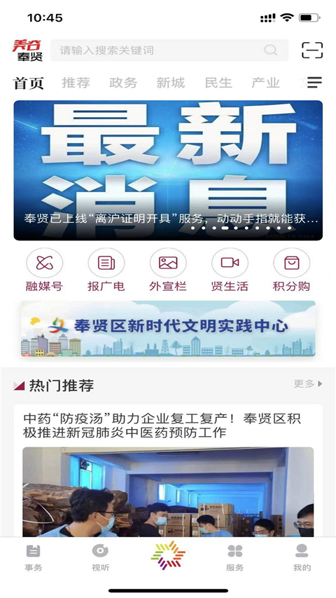 4、打开“美谷奉贤”融媒体客户端,观看城市动态。