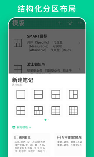 格子笔记app是一款简单实用的笔记记录软件,用户可以随时将需要记录的笔记下来,随时随地拿起手机就可以记,不仅能通过该软件记下逻辑清晰的笔记,还能够培养用户的结构思维,增加记忆力。海量模板可以在线选择,打造属于用户自己独一无二的笔记框架,还可以选择各种类型的格子,将所需要记录的事情分类记下,不同的时间类型采用不同的模板格式,清晰记录,简单又明了。用户可以记录日常的生活开支,超市采购,课堂笔记以及会议记录等多种不同的用途,一键记录更方便。有需要的朋友欢迎下载体验!