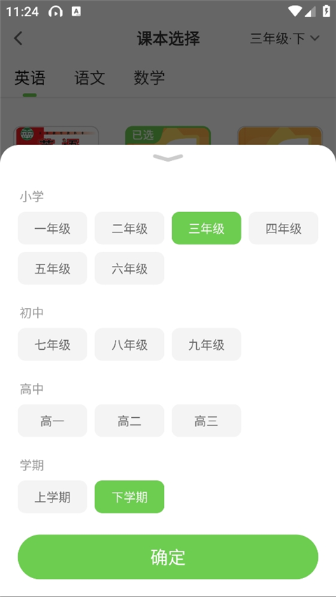 1、下载好app并打开,首先选择课本和年级,可以切换