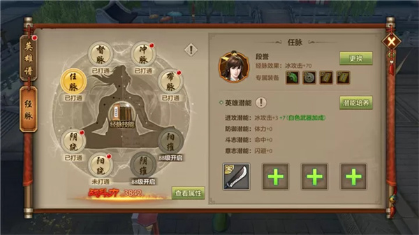 2、英雄需要达到30级好感度才能激活少侠经脉。