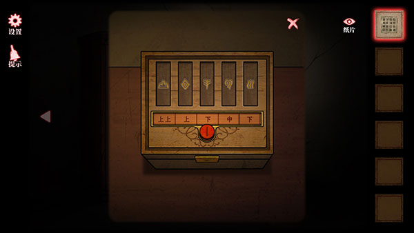 9、签盒里的五支签上对应了匣子的密码,要把匣子上的每列图案高度与签的名字对应上。