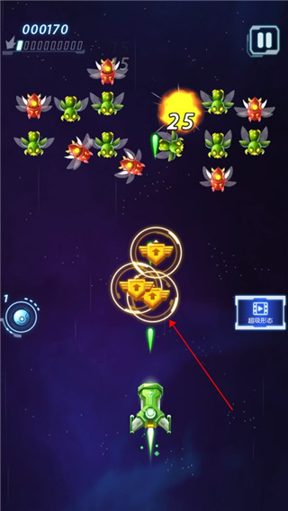 2、移动飞机来挑调整攻击位置,一旦触碰到敌人就会直接失败。