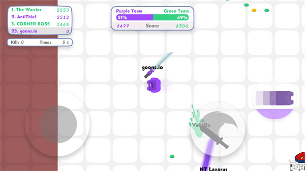 1、控制摇杆走位,吃掉地图上的宝石增加英雄到队伍中
