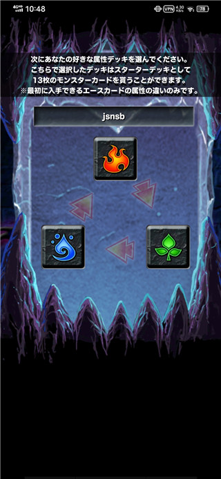 1、下载好游戏后,直接进入,在同意游戏须知和取好ID后就可以选择你的初始卡牌属性,根据自己的喜好选择即可。