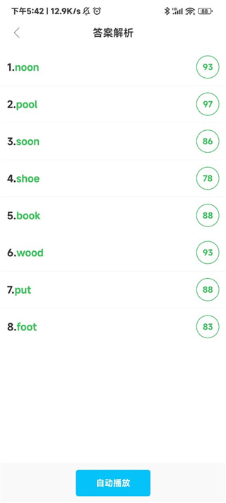 6、点击下方的答案解析还能够回顾自己的单词发音;