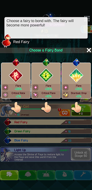 战略性地从90种不同的与你的仙女的关系中选择,来加强和定制你的角色属性!