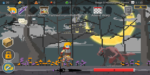 自我剑剑闲置官方版(EgoSword)是一款超有趣的复古像素风RPG冒险游戏。玩家只需要滑动方向摇杆就可以控制角色移动的方向,然后点击攻击按钮就可以使用自我剑无限攻击像素怪物,当你打败像素怪物后,你将会进入下一关。但是战斗终归是有风险的,如果玩家控制的英雄被怪物击败,则将宣告挑战失败。而我们为了能尽量去避免这种情况,就需要收集足够多的强力战斗套装,或者收集多种可以无限进化的剑,并最终达到实现真正的人剑合一境界。